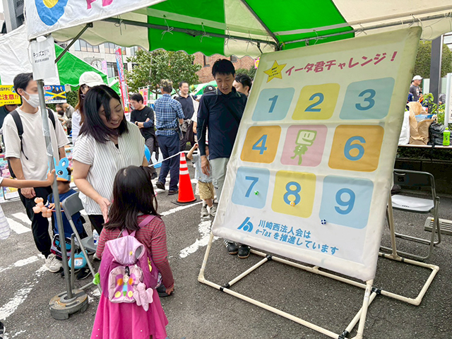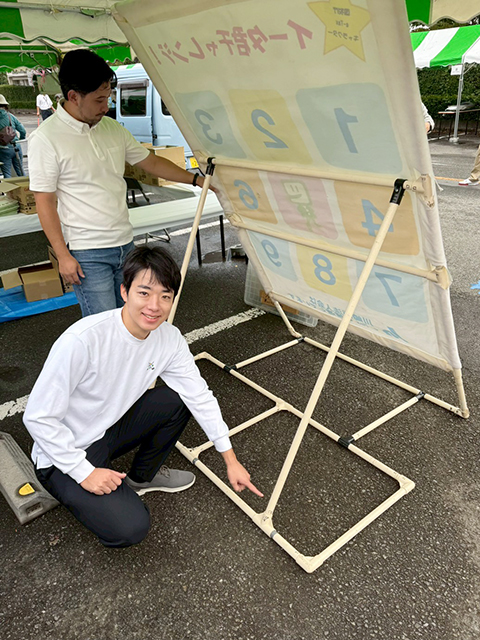 青年部会では家族連れや子供たち向けに、毎年大人気の「的当てゲーム」ブースを出展し、今年も長蛇の列となる賑わいとなりました。