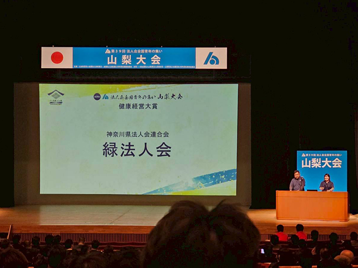 会場では租税教育活動プレゼンテーション、健康経営大賞、記念講演会を拝聴して租税教育活動パネル展示や物産展を見学し、大会式典後の大懇親会では、山梨県法人会連合会・青年部会連絡協議会からの熱い歓迎とおもてなしを受け、とても感動しました。