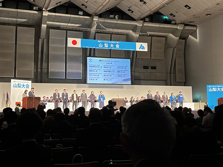 令和7年11月20日(木)、21日(金) に「第39回全国青年の集い山梨大会」がYCC県民文化ホールと交付記念日ホテル、アイメッセ山梨の3会場にて開催され、当青年部会から10名が参加しました。